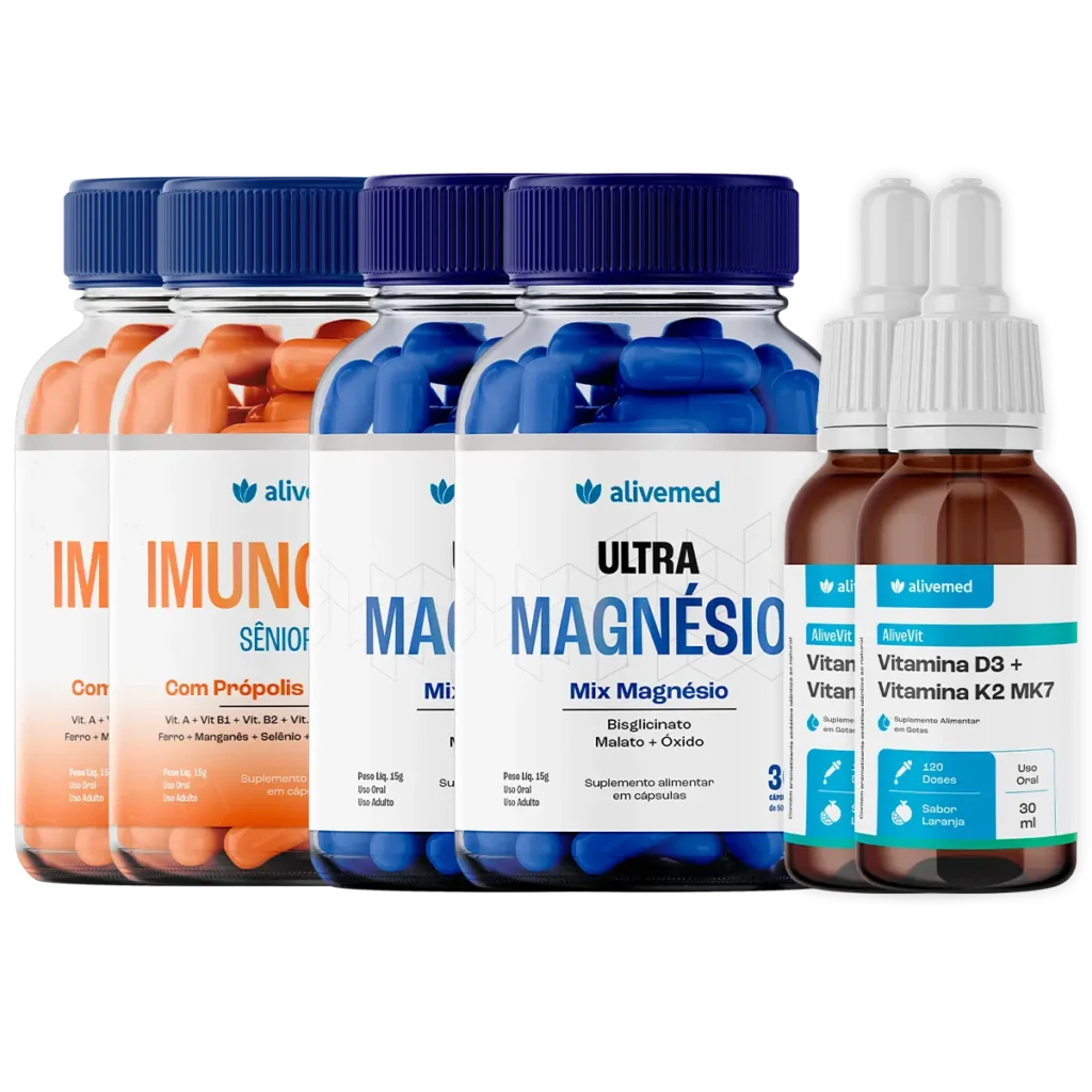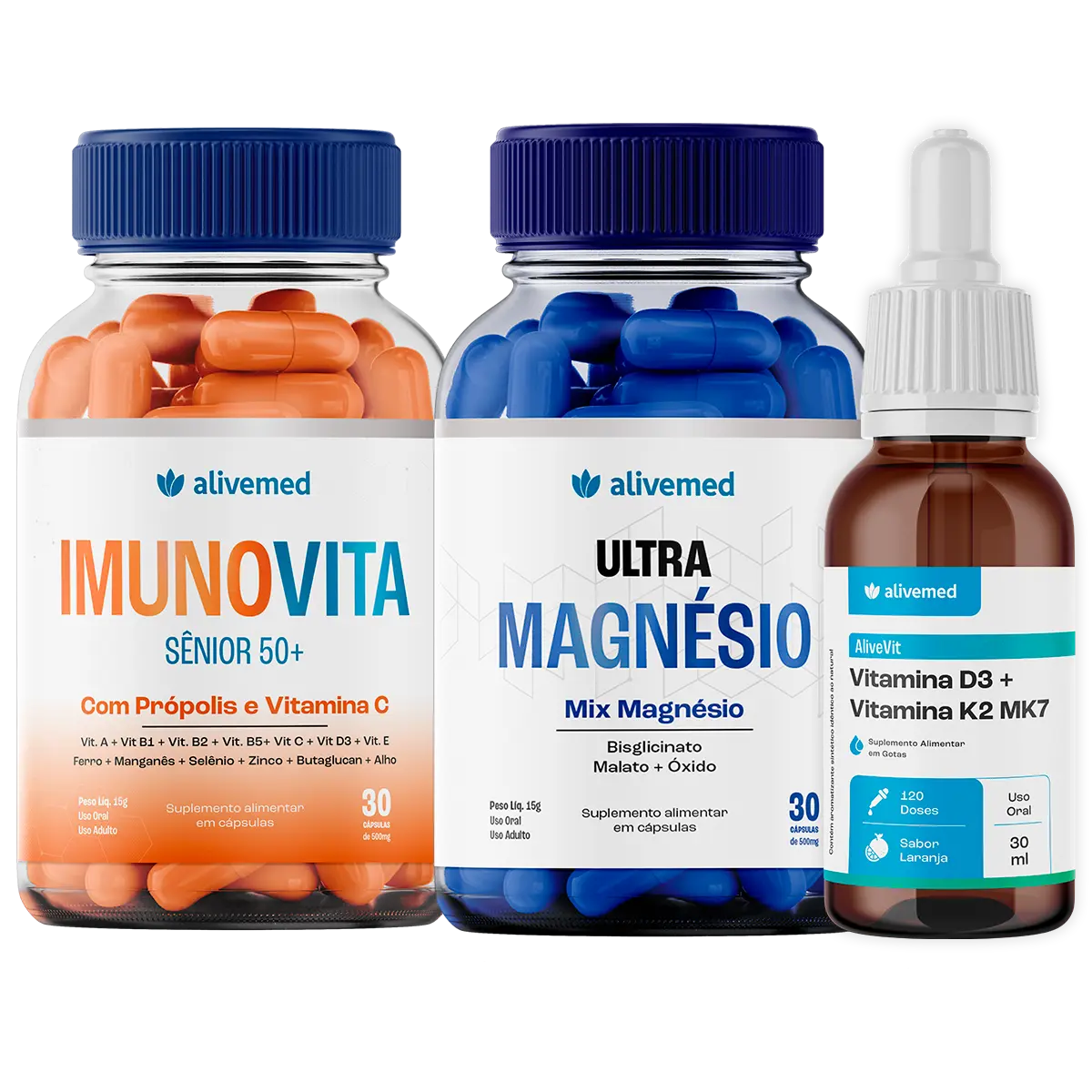 Kit Imunidade 50+: ImunoVita, UltraMagnésio e AliveVit D3+K2